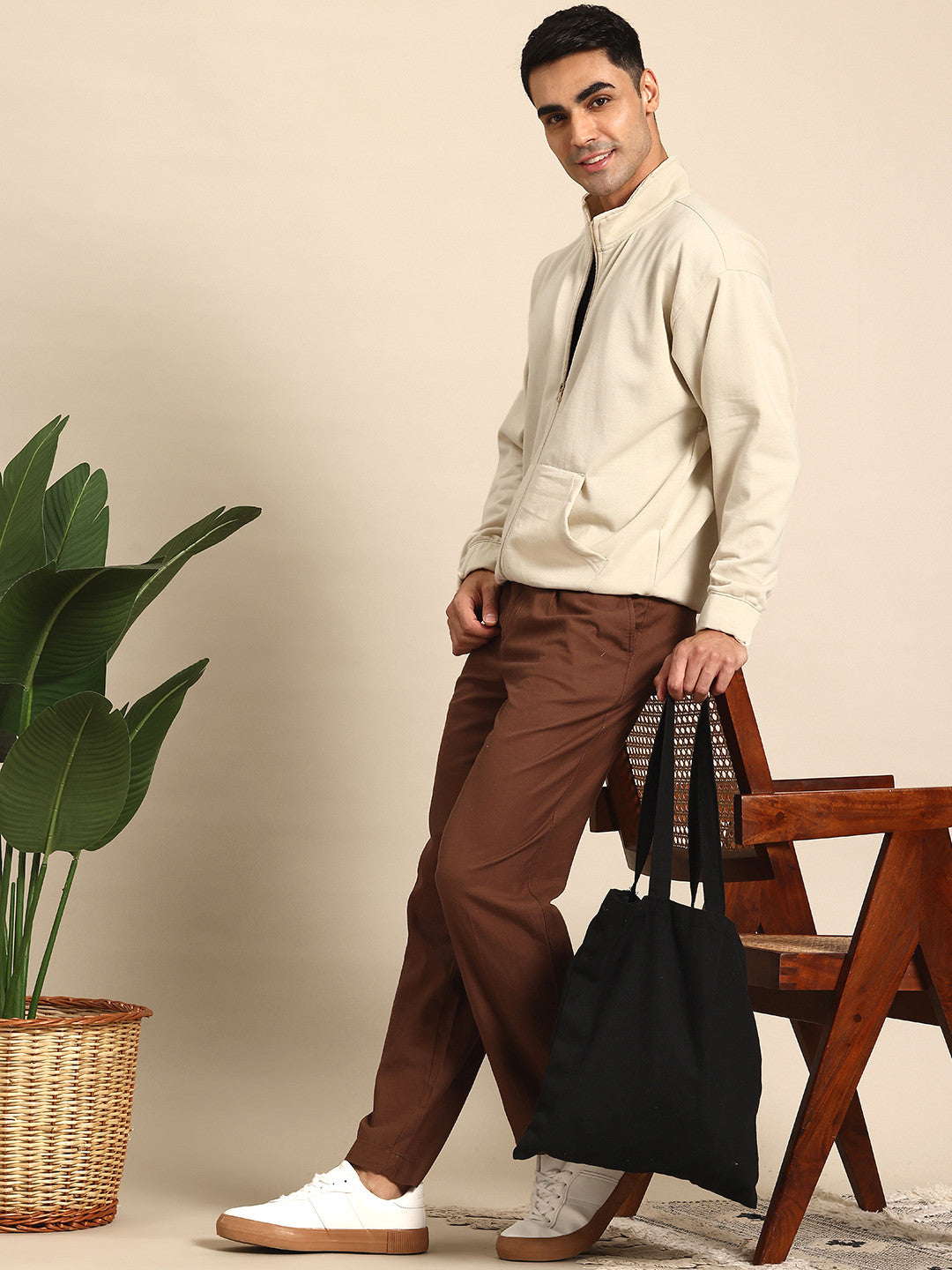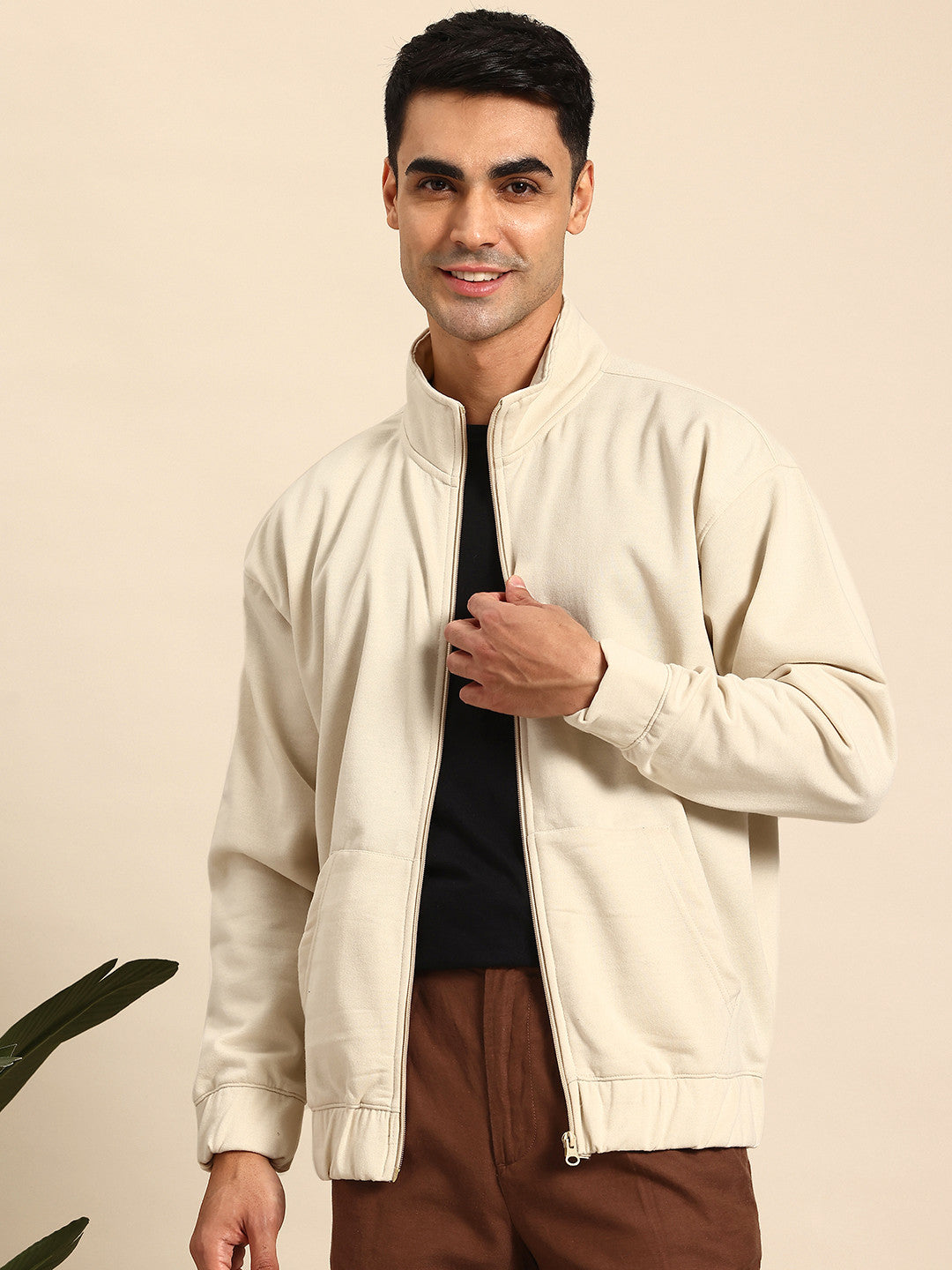 Experience refined comfort with this off-white solid regular fit sweatshirt, crafted from 100% polyester for durability and easy care. It features a sophisticated mock collar and a front zip closure, allowing for versatile styling and adjustable ventilation. Two insert pockets provide practical storage without disrupting its sleek design. The long sleeves and straight hem offer a classic silhouette suitable for everyday wear. Designed for a regular fit, the sweatshirt is modeled at size M, with a chest measurement of 36'' and a height of 6'. Machine washable, this piece combines functional design with contemporary style for a polished, effortless look.