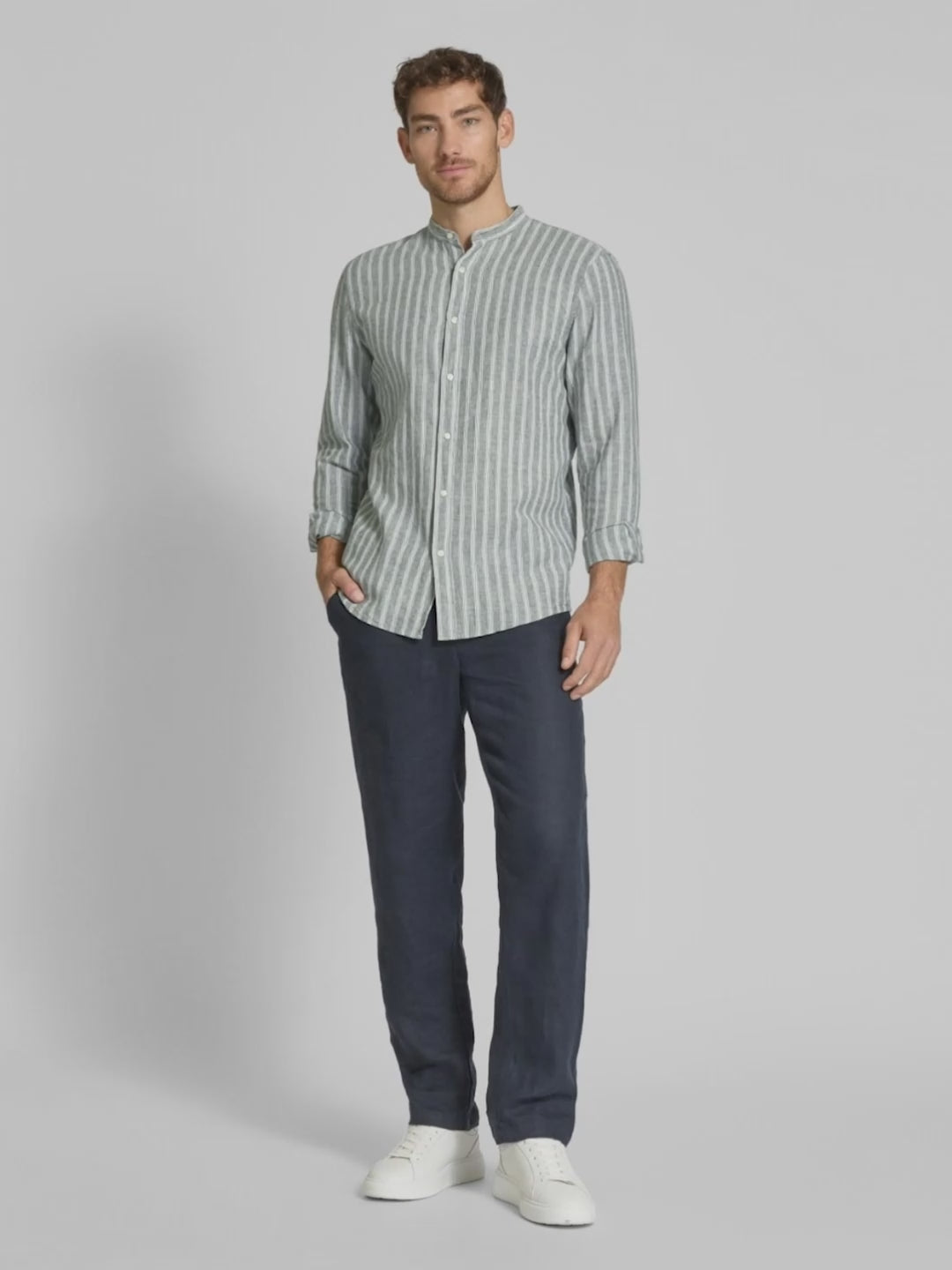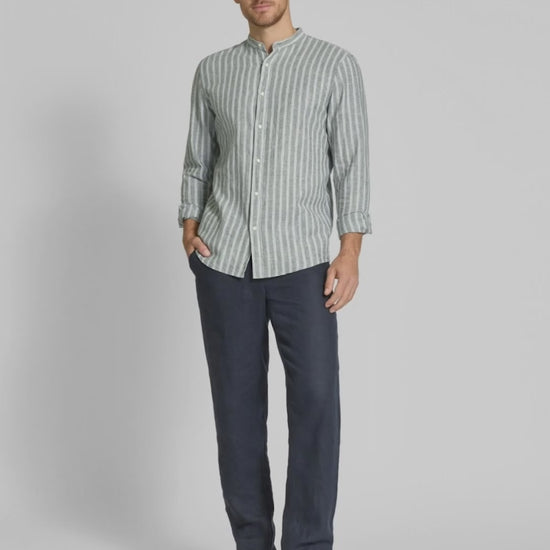 Slim fit casual shirt in a linen blend with a Mao collar in khaki