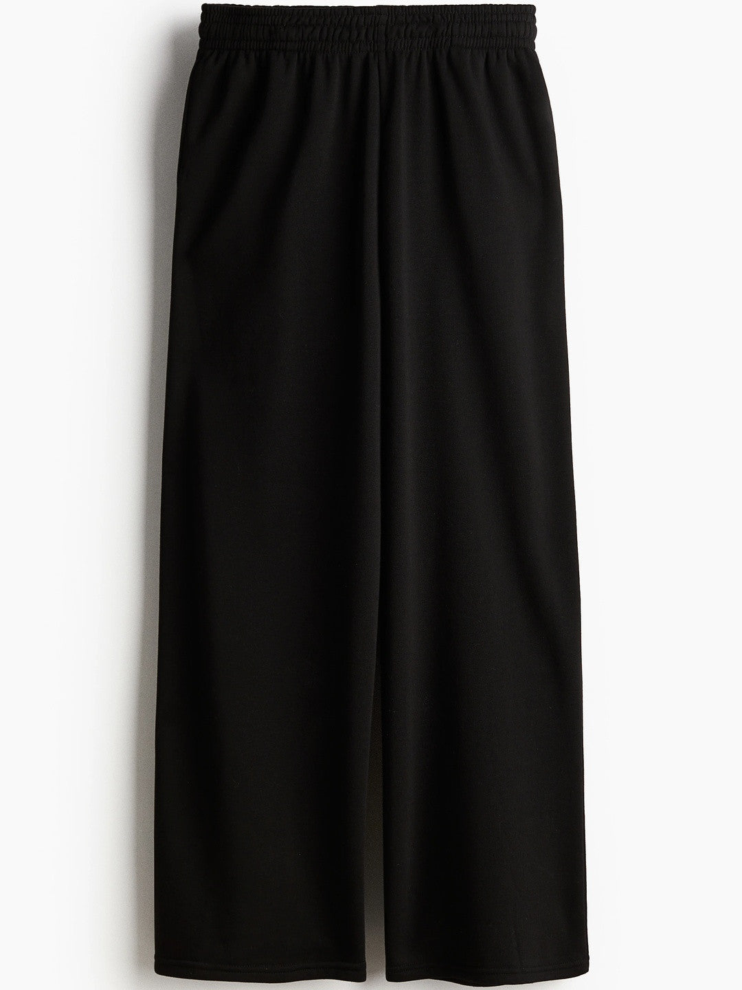 These wide jogger trousers feature a loose fit crafted from sweatshirt fabric with a soft brushed interior for added comfort. Designed with a high waist, they include elasticated smocking and a hidden drawstring for an adjustable fit. Practical elements include discreet side pockets, an open back pocket, and wide legs for ease of movement. Made from 62% cotton and 38% polyester, they offer a mid-rise waist and regular length with a flat-front design. Suitable for hand washing, these joggers provide both style and functionality in one versatile piece.